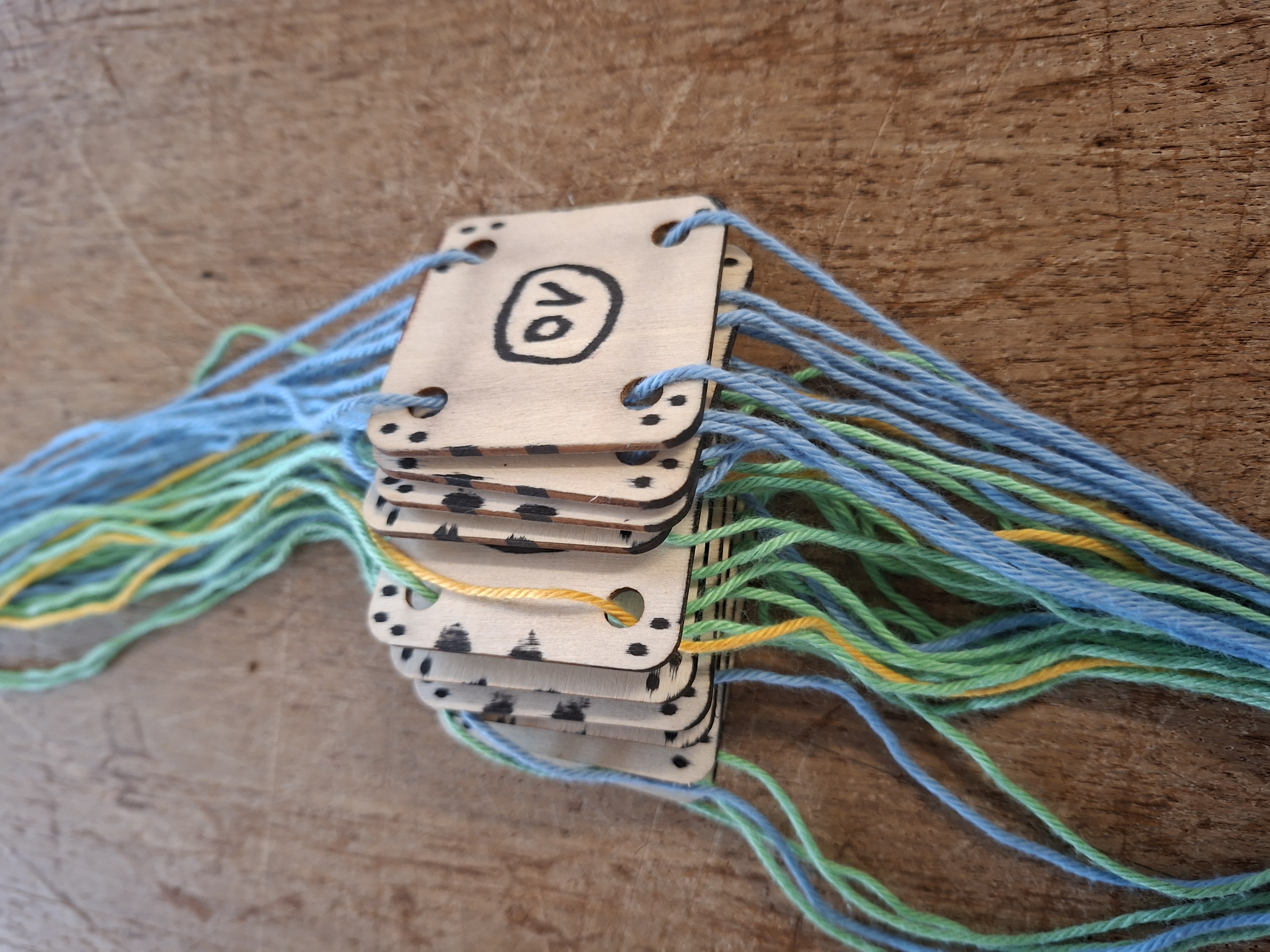 Retour sur le métier à tisser: séance essai ourdissage + découverte du tissage tablette (la technique sera utilisée l'année 2):
