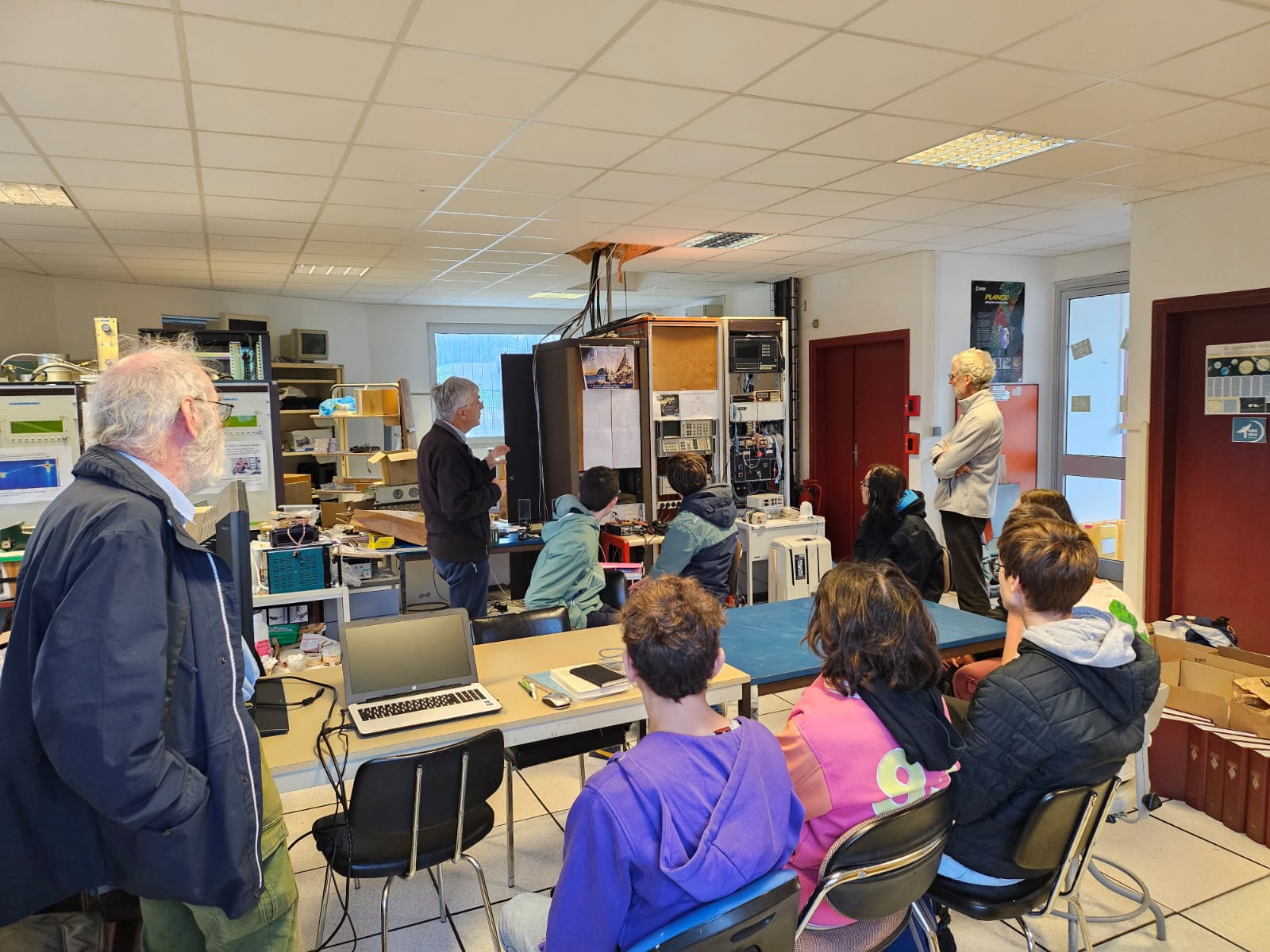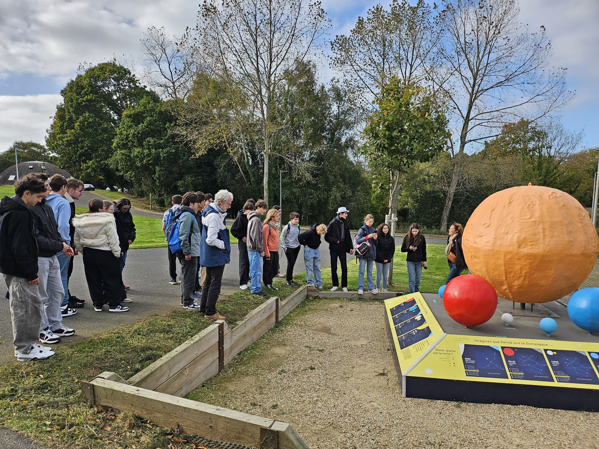 Ils ont pu assister le matin à une séance au planétarium de la Coupole de Saint-Omer. Comme on peut le lire sur leur site Internet, cxe planétarium 3D est "Doté d’un écran hémisphérique à 360° de 15 mètres de diamètre, d’un sol incliné de 15° et d’un système sonore spatial 5.2, (il) offre aux spectateurs une immersion totale dans l’espace et les sciences. Les sièges embarquent un boîtier de vote permettant de rendre les séances interactives*. Les films sont projetés en 3D par 12 vidéoprojecteurs laser, associés à un simulateur astronomique générant des images à 360° d’ultra haute résolution (10K : 10 millions de pixels).