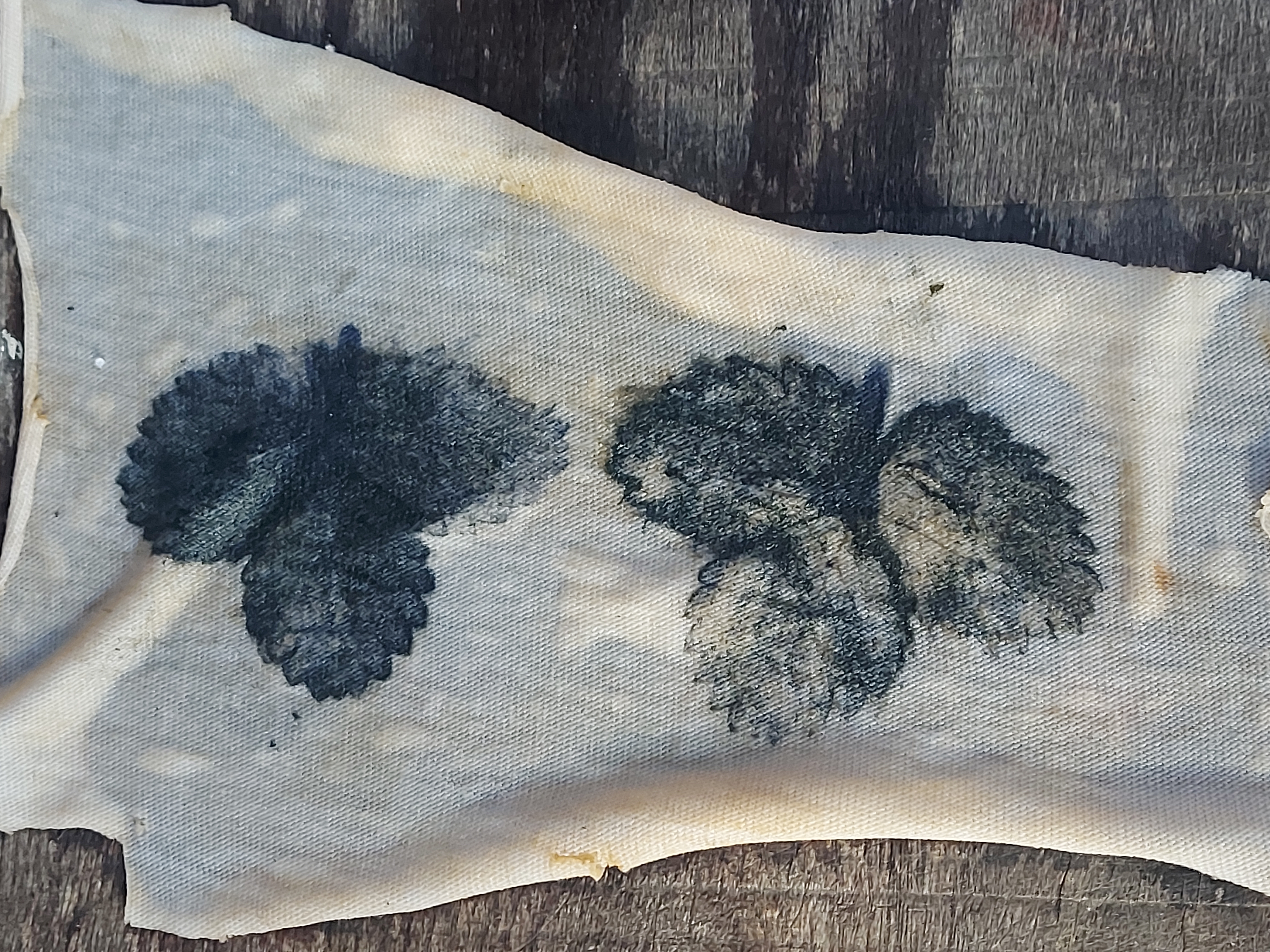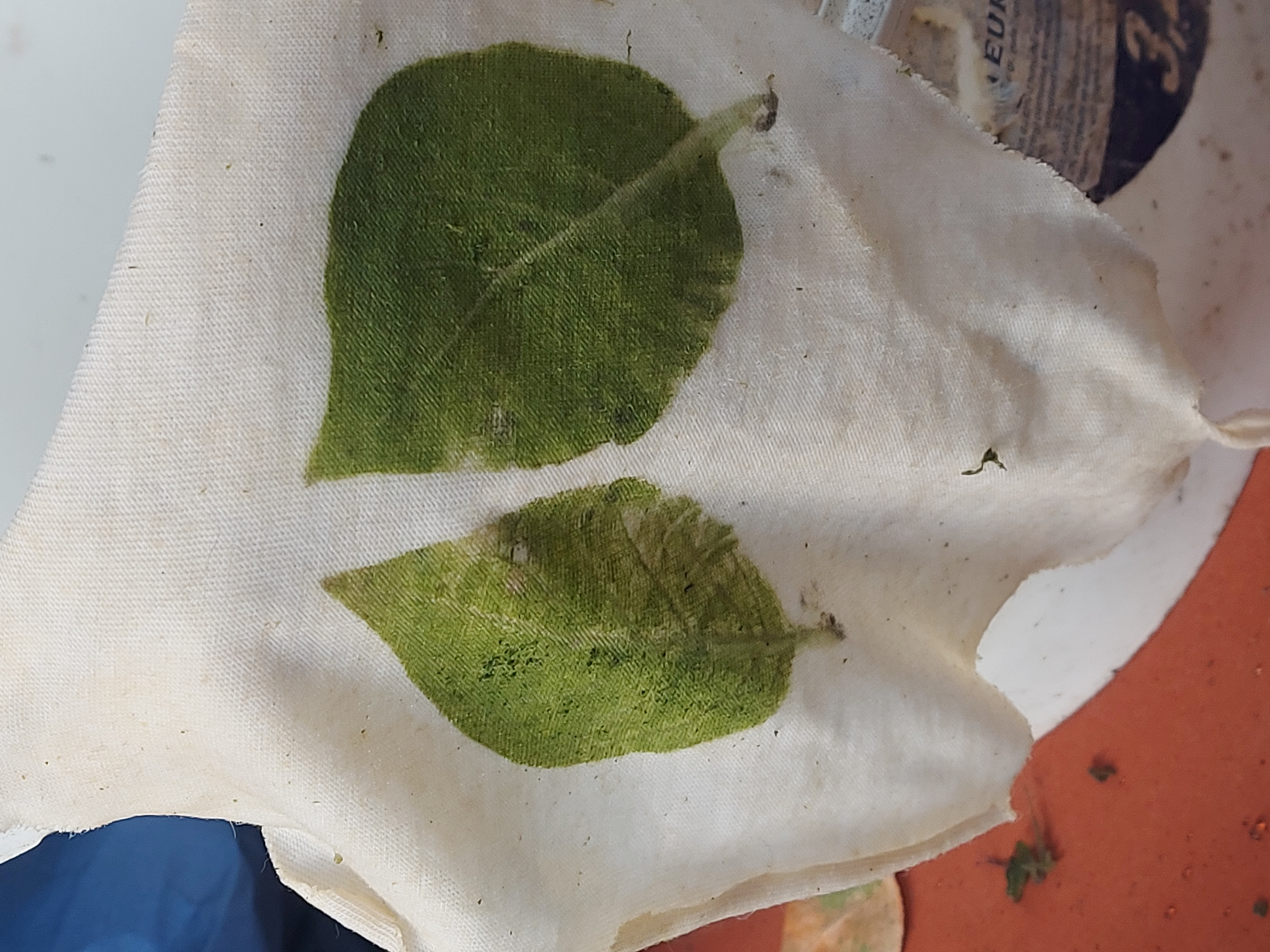 Pour occuper pendant la "cuisson": initiation à de simples techniques de tissage + découverte de la teinture frappée avec productions d'élèves (à base notamment de feuilles de fraisiers):