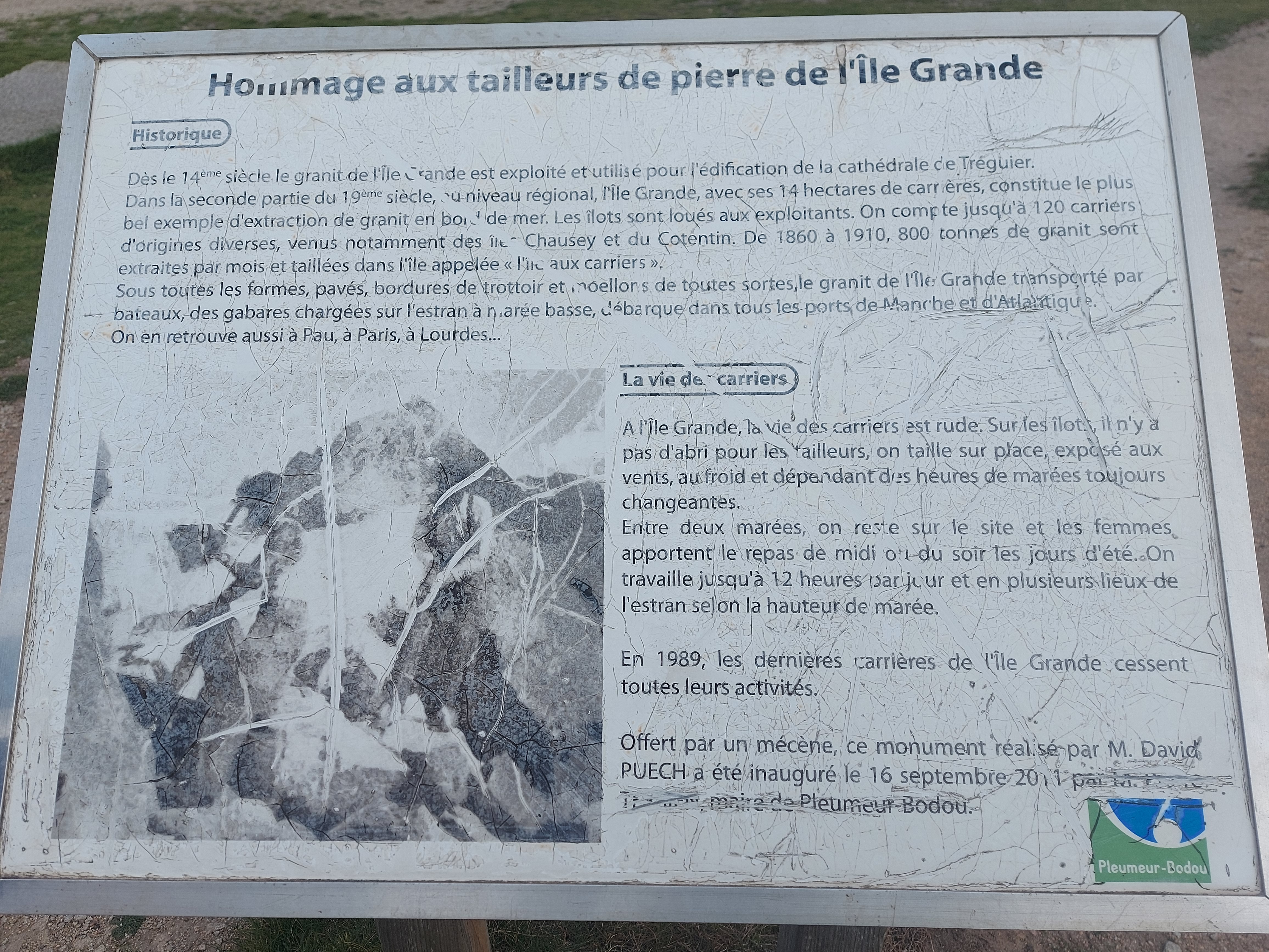 Statue réalisée par le sculpteur David Puech et installée en hommage aux tailleurs de pierre de l’Ile Grande, à l’emplacement d’une ancienne carrière appelée localement le « Lion », à l’est de Pors Gwen.