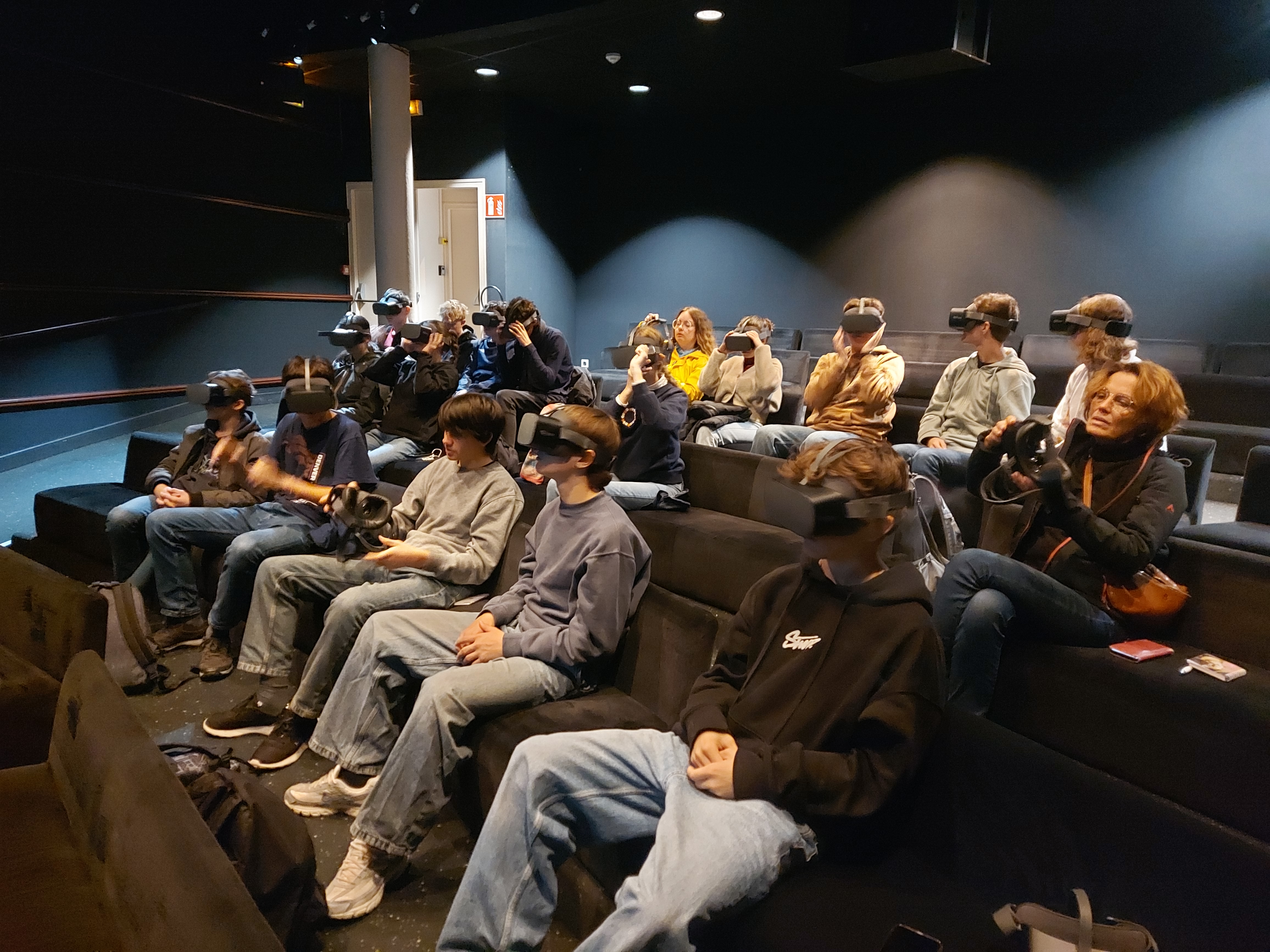Ils ont pu assister le matin à une séance au planétarium de la Coupole de Saint-Omer. Comme on peut le lire sur leur site Internet, cxe planétarium 3D est "Doté d’un écran hémisphérique à 360° de 15 mètres de diamètre, d’un sol incliné de 15° et d’un système sonore spatial 5.2, (il) offre aux spectateurs une immersion totale dans l’espace et les sciences. Les sièges embarquent un boîtier de vote permettant de rendre les séances interactives*. Les films sont projetés en 3D par 12 vidéoprojecteurs laser, associés à un simulateur astronomique générant des images à 360° d’ultra haute résolution (10K : 10 millions de pixels).